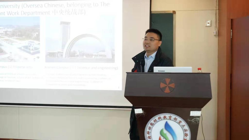 ,并进行题为“钙钛矿材料的缺陷态密度调控及其高效光电器件的构建”的学术报告。本次报告会由特种功能材料重点实验室武四新教授主持,学校相关领域的老师和学生参加了此次报告会。