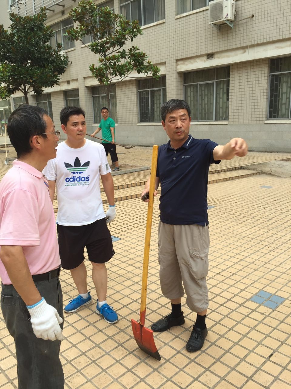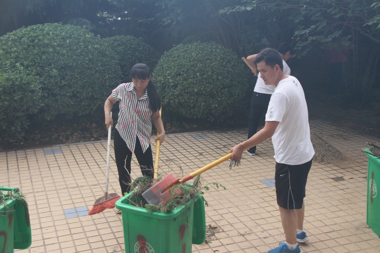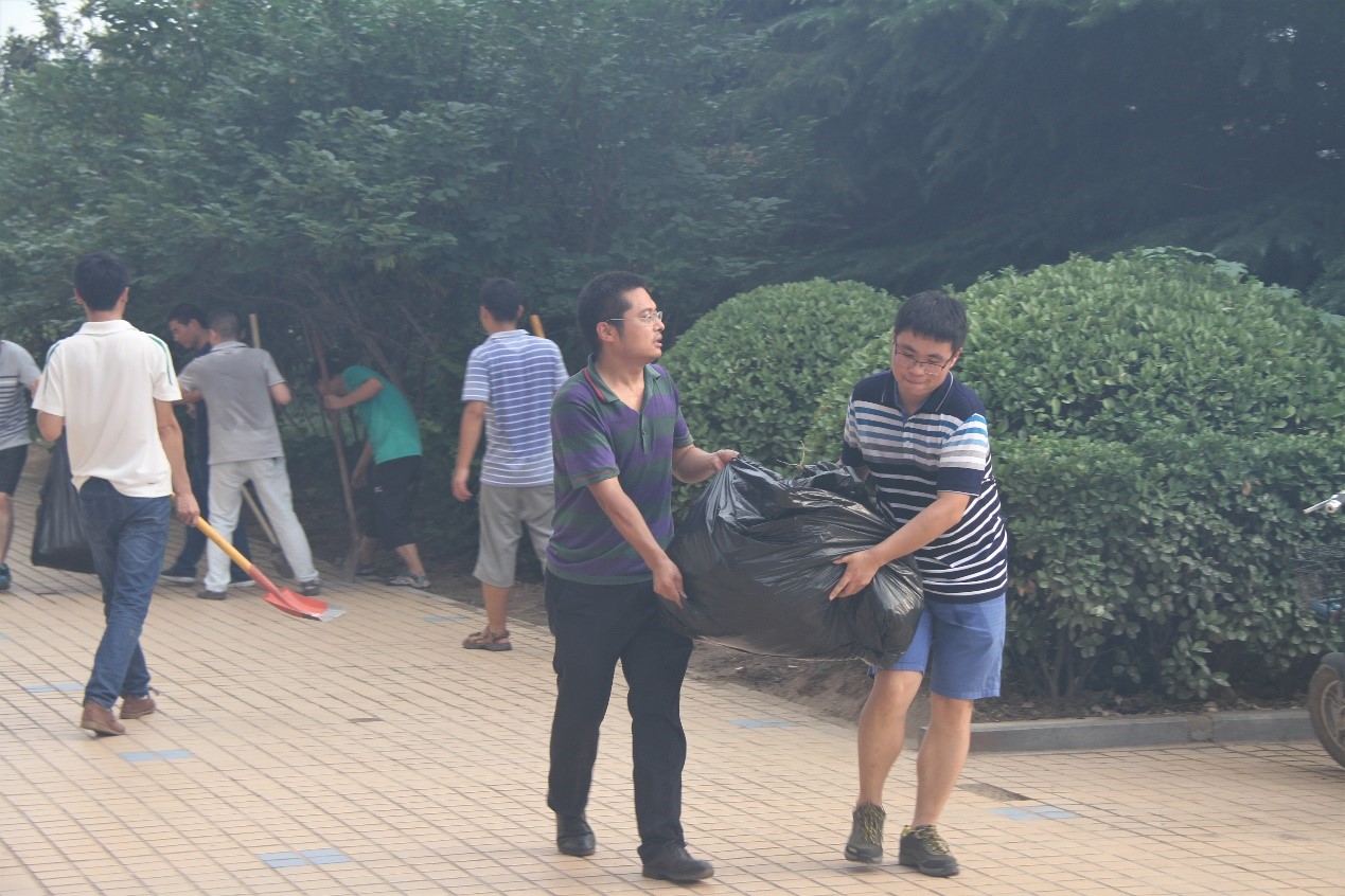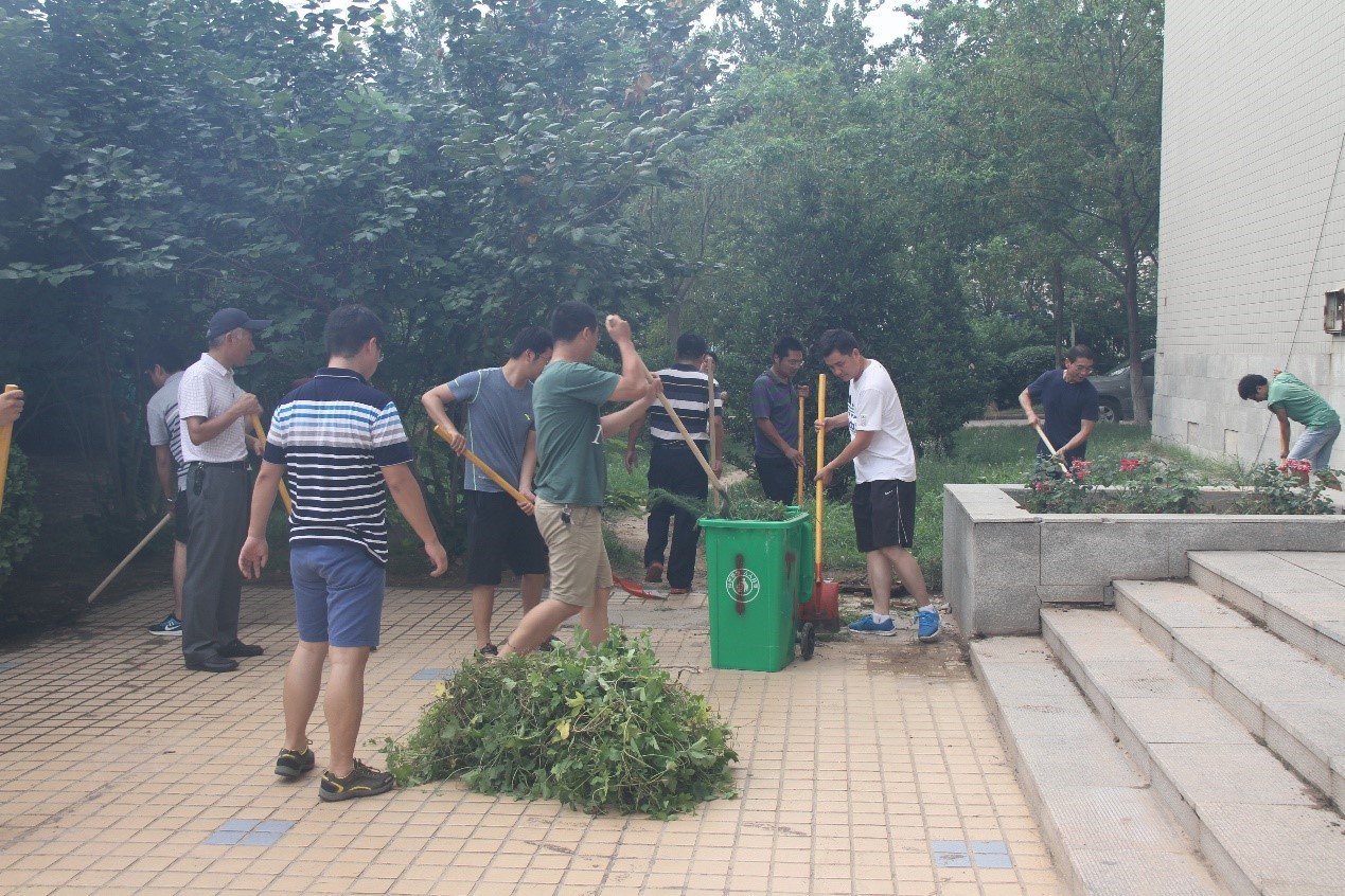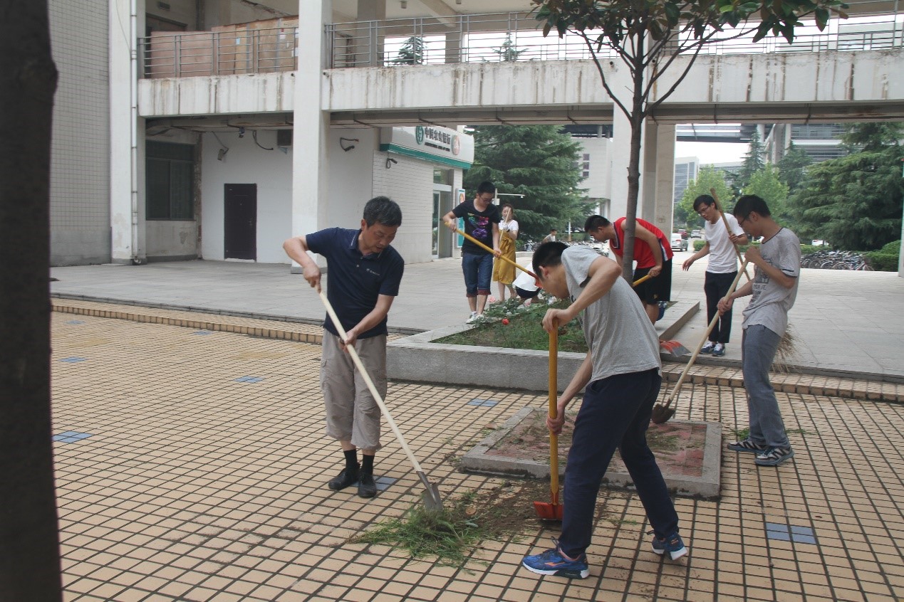 开封市国家卫生城市复审、全国文明城市创建工作,69成人小说 申报首届全国文明校园工作均已进入到关键阶段,环境卫生是其中的重要内容。因此,实验室师生轮流值日,每天坚持打扫卫生,做好保洁维护。在此基础上,7月17日下午,在重点科研机构党委书记张霖、实验室常务副主任杜祖亮带领下,实验室全体师生针对卫生死角,开展专项校园清洁活动。
