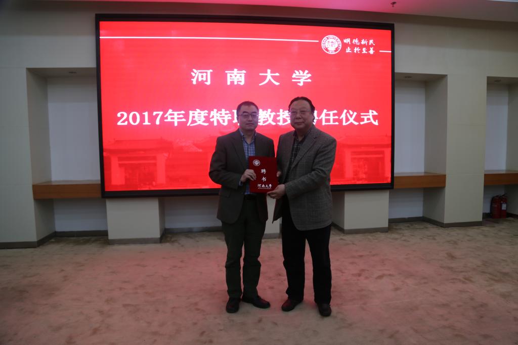 “杰出人才特区支持计划”特聘教授,校党委副书记赵国祥为他们颁发了聘任证书。