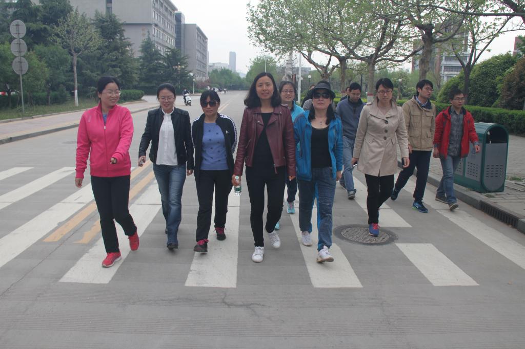 2017年4月13日上午,正值春日来临,校园里群芳争艳,蓝天白云清晰可见。实验室的老师们暂时放下手头繁忙的工作,参加工会组织的“春风满怀”校园健步走活动。老师们脚下生风,欢声笑语一路不断,既锻炼了身体,又欣赏了校园的春日丽景。