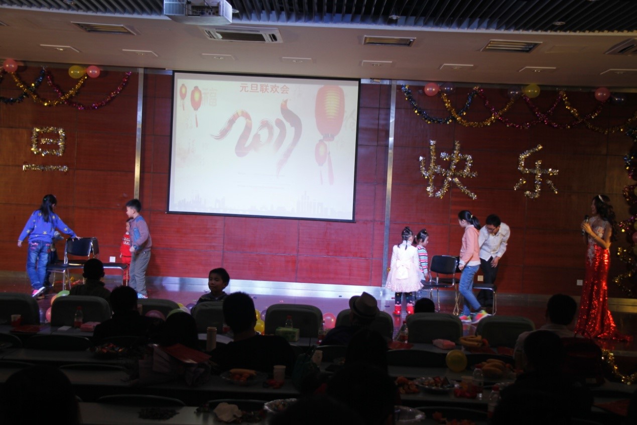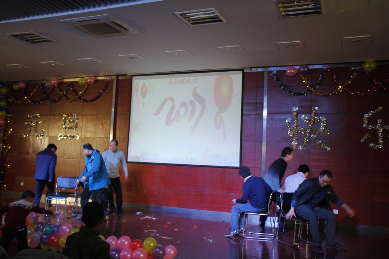 实验室的老师们也毫不逊色。且不说一度把联欢会推向高潮的两首合唱,单单是青年教师四人组幽默风趣的《三句半》就令全场沸腾。联欢会中间穿插的各种小游戏也极尽搞笑之能事,台上台下互动频繁,体现了实验室欢乐一家亲。平时严肃认真的老师们玩起抢凳子游戏,让人见到了专业能力出众的精英教授们平易近人、欢乐可亲的一面。实验室特有的、同学们最爱的微信上墙抽奖活动更是让联欢会高潮迭起、惊喜连连。