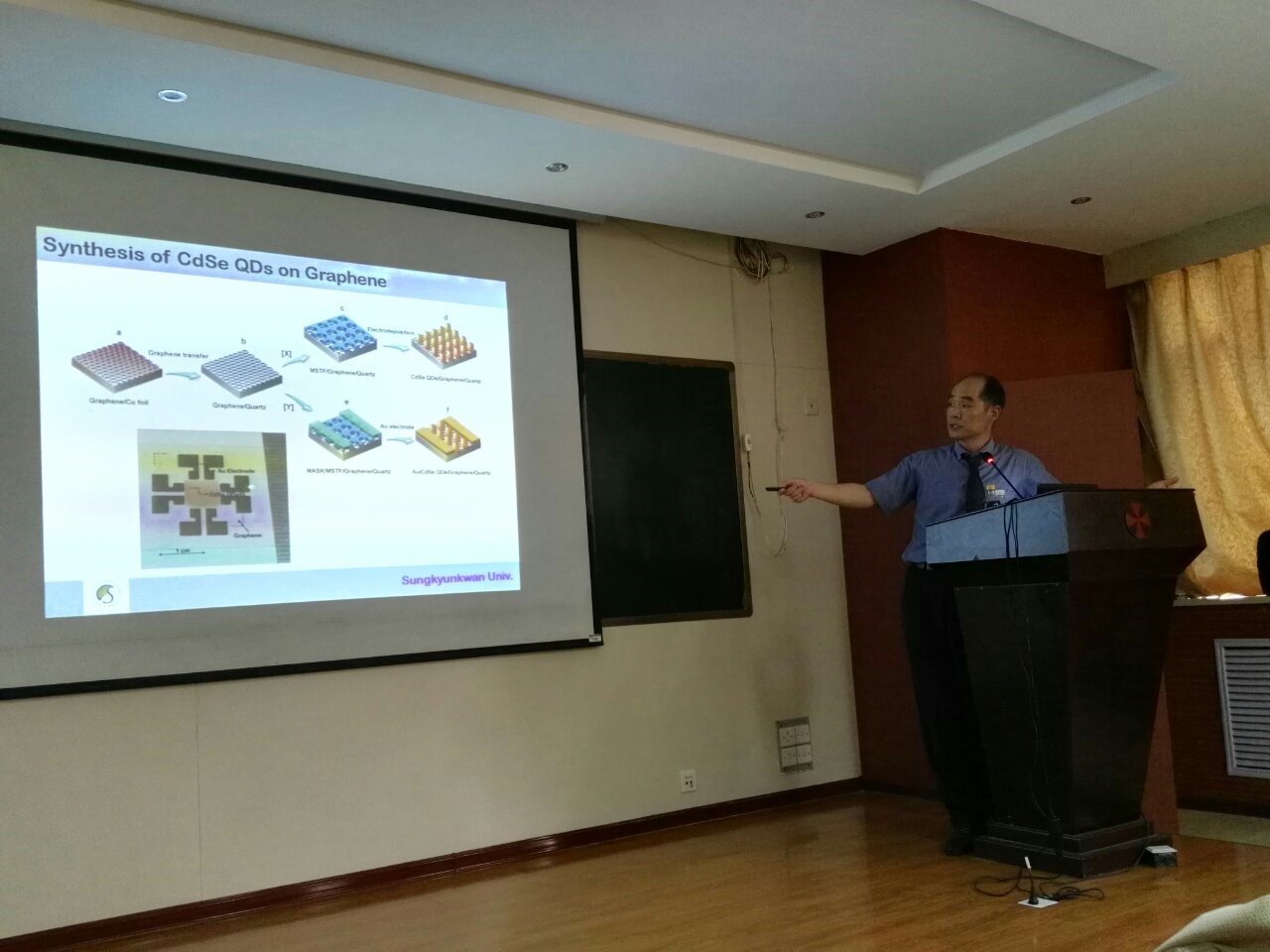 ,并做了以“超声合成燃料催化剂和介孔材料的合成及应用”为主题的学术报告。本次报告由Kwon教授的博士毕业生,刘景玲老师主持,特种功能材料重点实验室相关老师和学生参加了此次报告会。