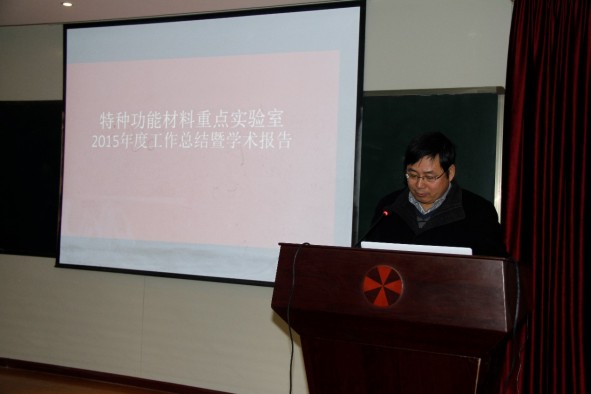 2016年1月22日至23日,特种功能材料重点实验室2015年度学术报告及工作总结会在实验室二楼报告厅举行,实验室全体教职工及学生参加了此次会议。
