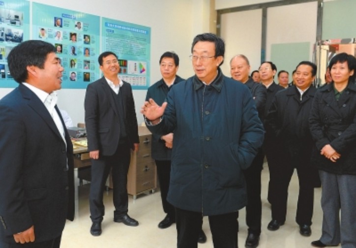 随后杜祖亮教授给郭书记汇报了QLED项目研发的整体规划情况。他说,去年我们专门给徐济超副省长汇报之后,省里专门下发了省长办公纪要,要求加快研发进程。学校对此非常重视,经反复研讨制订了详细的研发规划。分为三个阶段:分别是实验室阶段,中试阶段和产业化阶段。目前是实验室在原理上的探索,这一块儿主要是基础研究,现在还需要重点支持一下。听到这里,郭书记立即询问需要什么支持。杜祖亮汇报说,现在我们正在申报河南省特色优势学科,希望将QLED相关学科纳入省特色优势学科计划,进一步提升QLED研发平台。郭书记说,学科能不能进入还是要专家学者来评价,但有关部门应当给予关注。杜祖亮继续汇报说,在第二阶段中试方面我们正在和德科科技园合作,现在校、市的合作正全面展开,市里的吉书记和我们学校的关书记亲自抓,联合共建中原硅谷科技发展研究院和光电科技园。QLED项目是首先入住的项目,正在围绕QLED建立联合研发中心和孵化器。郭书记还详细询问了正在进行的联合研发项目进展情况,杜祖亮一一作答。汇报最后,杜祖亮向郭书记介绍了正在进行的量子点打印技术。他说,工艺和制程问题是制约QLED应用的另外一个难点,我们希望通过我们原创性的研究,探索出一条可行的技术路线,有许多基础和技术的问题要研究解决。这一过程需要有研制生产手机面板显示屏的专业性企业介入,包括中试线的建立,都需要专业的企业来参与进来,由企业主导。杜祖亮说,目前与这类企业的对接也是一个困难。郭书记当即表示,省里要做一些调研,帮助你们与企业对接。