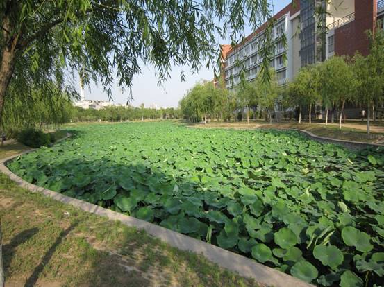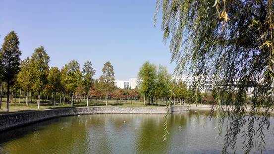 :校园中的教学楼与实验楼矗立在弯弯曲曲的水面旁边,即具有江南水乡的古典风貌,又具有现代校园的建筑魅力。