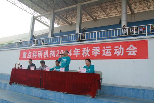 金明校区志义体育场举行了2014年秋季运动会,这是重点科研机构团委成立以来首次举办的学生运动会。出席秋运会开幕式的领导有重点科研机构党委书记赵东保教授,副书记杨建军教授,特种功能材料重点实验室副主任胡彬彬副教授,黄河文明与可持续发展中心副主任姬汴生教授及天然药物与免疫工程重点实验室副主任刘东勋教授,运动会由杨建军教授主持,重点科研机构团委负责人邹雪艳、赵美霞及两百多名研究生参加。