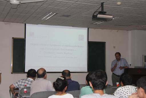 6月21日下午,应特种功能材料重点实验室的邀请,德国汉堡大学(University of Hamburg)理学院副院长Chris Meier教授访问特种功能材料重点实验室并在实验室二楼报告厅分别做了题为:“Highly efficient Synthesis of Nucleoside Mono- and Diphosphate-Saccharides”的学术报告。报告会由王华教授主持,特种功能材料重点实验室、天然药物重点实验室以及化学化工学院的部分师生参加了报告会。