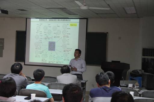 5月8日下午,应特种功能材料重点实验室的邀请,中国科学技术大学化学系教授、博士生导师、中国科学院"百人计划"入选者、国家杰出青年科学基金获得者王官武教授访问特种功能材料重点实验室并在实验室二楼报告厅做了题为:“钯催化的官能团导向sp2碳-氢键活化反应”的学术报告。报告会由实验室副主任白锋教授主持,特种功能材料重点实验室、天然药物重点实验室以及化学化工学院的部分师生参加了报告会。 王官武教授结合自己课题组多年的发展历程,详细介绍了碳-氢活化反应的机理、重要意义、应用前景等。他首先介绍了自己前期基于富勒烯的各类反应体系,然后详尽的讲述了其课题组在碳-氢活化反应领域取得的丰富而系统的研究成果,并将其课题组在碳-氢活化的反应取得的研究方法与思路应用于基于富勒烯的衍生化。王老师的研究工作丰富而系统,研究特色鲜明,相关研究工作发表在J. Am. Chem. Soc., Angew. Chem., J. Org. Chem.等高档的杂志上。 王老师报告中论述层次分明,报告内容引人入胜,令人震撼,会场师生享受到难得的有机化学学术大餐。报告结束后,师生对王老师工作感兴趣的地方进行了深入讨论和交流。通过王老师精彩的报告,实验室师生不仅对“碳-氢活化”有了进一步的深入认识,同时也王老师身上学习到了做科学研究的方式方法,深受启发。会后,王官武教授参观了实验室王华教授所在课题组,并结合相关学术问题进行了详细的讨论。