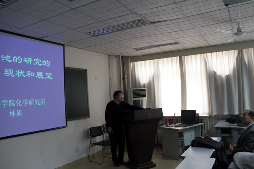 林原研究员介绍了纳晶染料敏化太阳能电池的基本结构、工作原理和最新研究进展。孟庆波教授重点介绍了物理所太阳能材料与器件团队在这一领域的代表性工作,包括纳晶多孔薄膜结构的优化、新型固态电解质材料与碳对电极的优化以及电池组件集成等,对这种新型太阳能电池存在的问题和发展机遇给予了中肯的评述。报告会中,两位研究员就太阳能电池方面的问题与实验室师生进行了广泛深入的讨论。