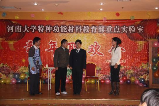 最后又实验室师生合唱《明天会更好》,2010年特种功能材料重点实验室元旦晚会在《难忘今宵》的旋律中结束。联欢会后实验室师生共进晚餐。
