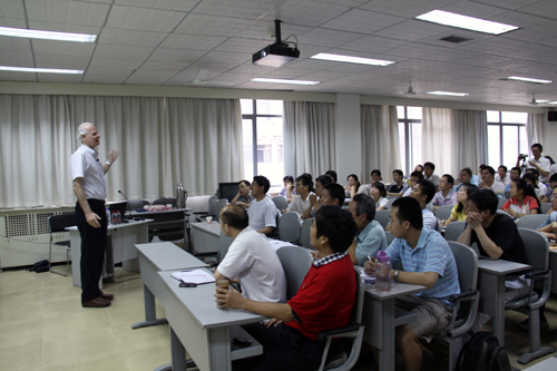 在为期一周的报告里,M.A. Van Hove教授首先结合自己的生活和科研经历分析了东西方文化、教育、思维方式的差异,认为我们只有更好地了解西方科学家的思维方式和特点,才能与之开展良好的合作。之后的时间里,M.A. Van Hove教授又就Order of Magnitude and Uncertainty, Optimization Methods in Materials Science, Birth and Growth of a New Field: Nanoscience, Quantum Well States, Nanoparticles, Quasicrystals – From 6D to Frying Pans等问题报告了他在上述方面所开展的研究工作。