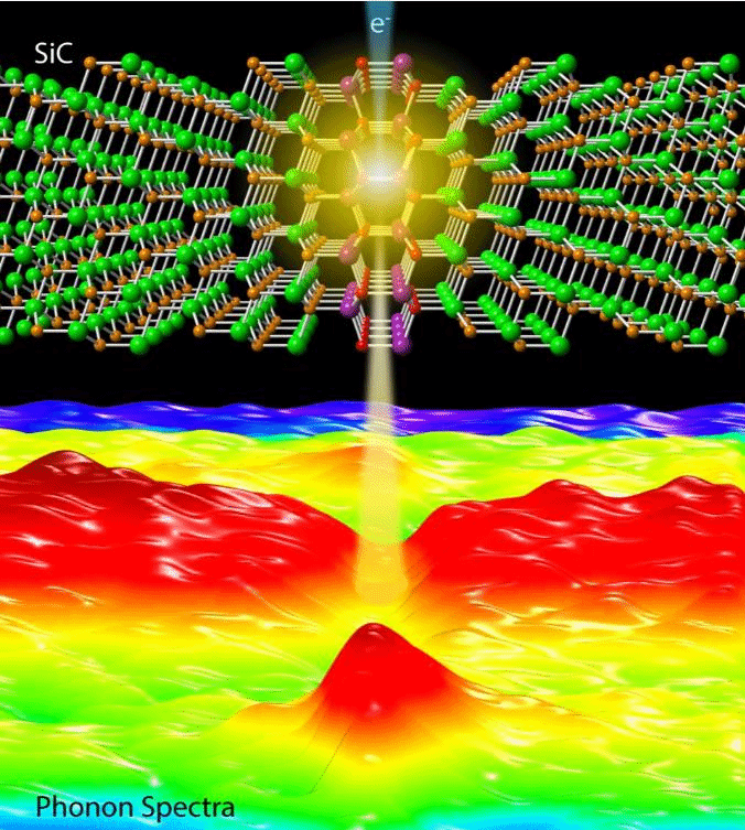 材料的导热性能显著影响器件的散热问题和实际使用寿命。对于非金属材料,声子被认为是热传导的主要载体。一般认为缺陷结构的引入会阻碍声子的传播,造成材料热导率的降低。然而,声子和材料内部缺陷的具体相互作用机制还并不明确。具体来说,缺陷结构如何影响局域声子色散关系E(q)和声子散射的问题还没有解决。受限于测试方法的空间分辨率和理论方法的发展,此前实验上和理论上对单缺陷的导热和声子谱的测量和分析都鲜有报道。