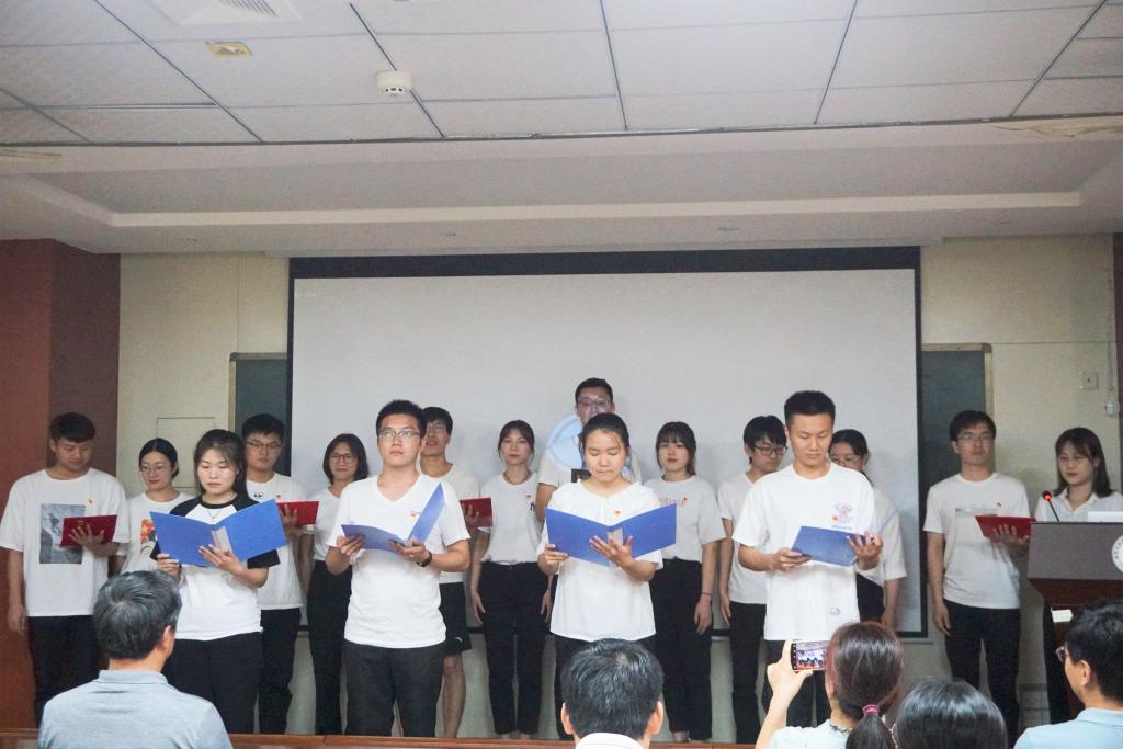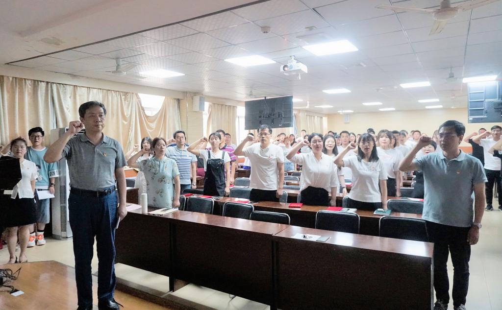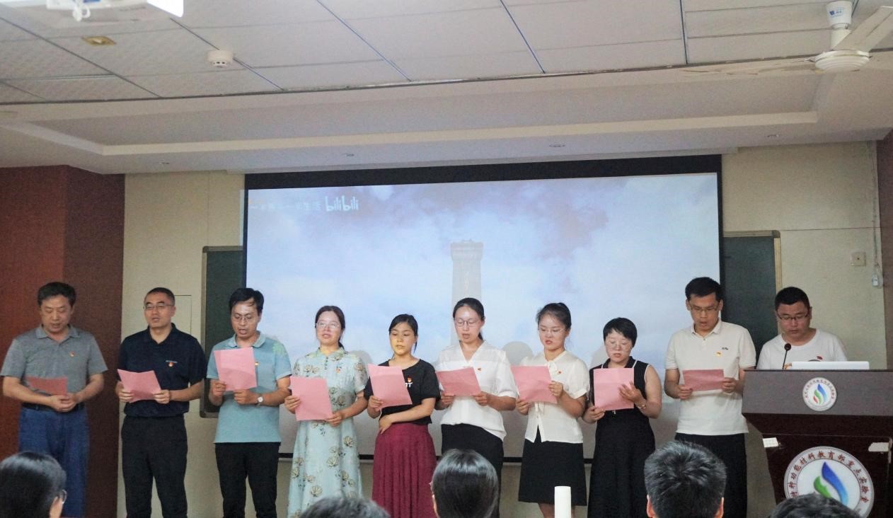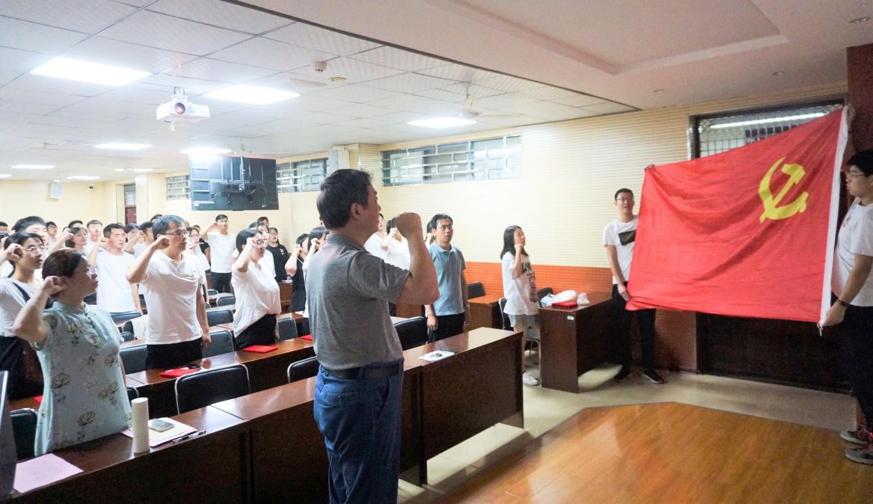 “我志愿加入中国共产党……”在张霖带领下,全体党员郑重宣誓。铿锵有力的誓言,表达了师生听党话跟党走的坚定信仰信念以及不忘初心、牢记使命的决心。