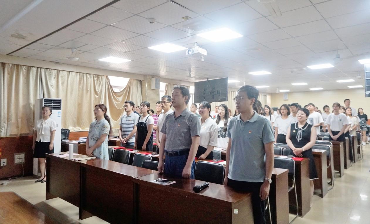 7月1日下午,材料学院二楼报告厅内党旗招展、红歌嘹亮。学院“庆祝中国共产党成立100周年”暨党史学习教育在此举行,学院全体党员、入党积极分子代表参加。活动由学院党委办公室负责人张丫主持。