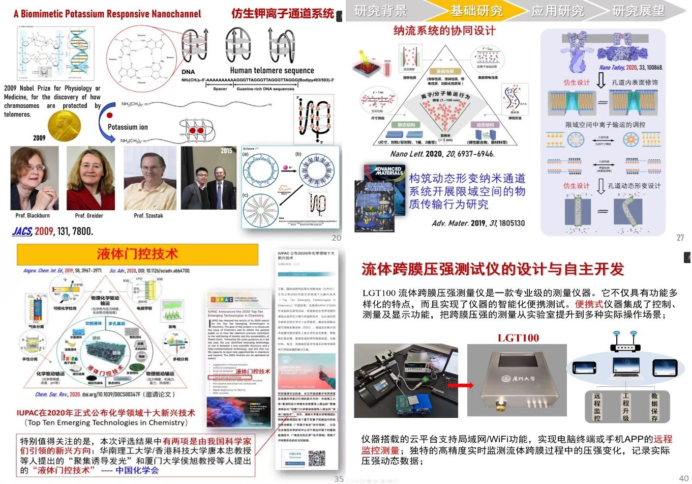 在本次学术活动中,侯旭教授就“仿生多尺度孔道研究”展开讲座,主要讲述了微纳米尺寸的孔道系统,通过细胞的运动能够改变物质的运输和传输建立人工体系,并且对对称/非对称分布、电场、浓度、动态离子形状和尺寸的调节观察离子传输,实现通道的孔径和长度可控并且制得材料具有柔性。