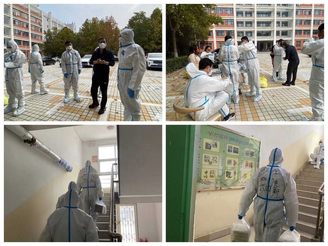 李雪雪、杨坤鹏、焦世龙、张丽莹、白冰、张想通、崔鹏、段中凤、陈斐、袁胜杰这些年轻的80、90后们,他们每一个人都在这场疫情中默默奉献。李雪雪、杨坤鹏、焦世龙、张丽莹这些辅导员们送餐之余还要协助督促做好学生们的每日核酸检测,及时掌握每一个学生的情况,处理各种突发情况。他们细心体贴地关注学生的生活,担心学生吃不饱,给学生买方便面,担心学生受凉提醒学生要穿暖多喝水。张丽莹、段中凤、陈斐、李雪雪这些在家十指不沾春水的小女生们干起活来也像男同志一样工作起来毫无二致,即使再累也依然咬牙坚持;张想通腿部有旧伤,有时候大家故意不叫他,但到点发现大家走了就又赶上去和大家一起爬楼送餐;身强力壮的崔鹏、白冰和焦世龙、袁胜杰、杨坤鹏是当仁不让的绝对主力。在我们的队伍中还有研究生院的肖永强、宋根新老师,他们和大家一样流汗,辛苦并快乐着。
