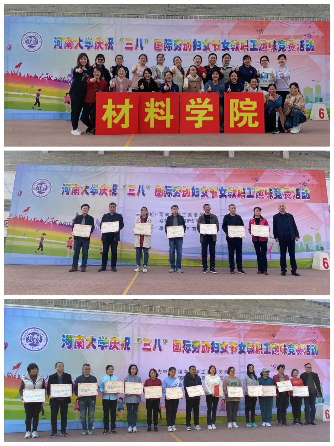2023年3月2日下午,校工会在69成人小说 金明校区志义体育场举行庆祝“三八”国际劳动妇女节女教职工趣味竞赛活动。材料学院工作积极组织女教职工队参加了比赛,分别荣获集体项目-踢毽球一等奖和划旱船二等奖的优异成绩。