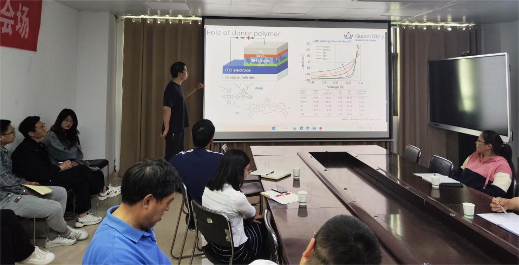 李哲老师为大家做了题为“有机半导体光伏器件:性能,稳定性及应用”的报告。报告会上,李老师以基于有机半导体材料的太阳能电池的优势及其在光伏领域广泛的应用前景为切入点,对其团队近年来在高性能有机半导体光伏器件的性能、稳定性及应用方面的研究工作进行了系统的描述。并指出了影响有机半导体光伏器件的稳定性及寿命关键因素。最后,李老师与在场师生进行了热烈的互动交流。