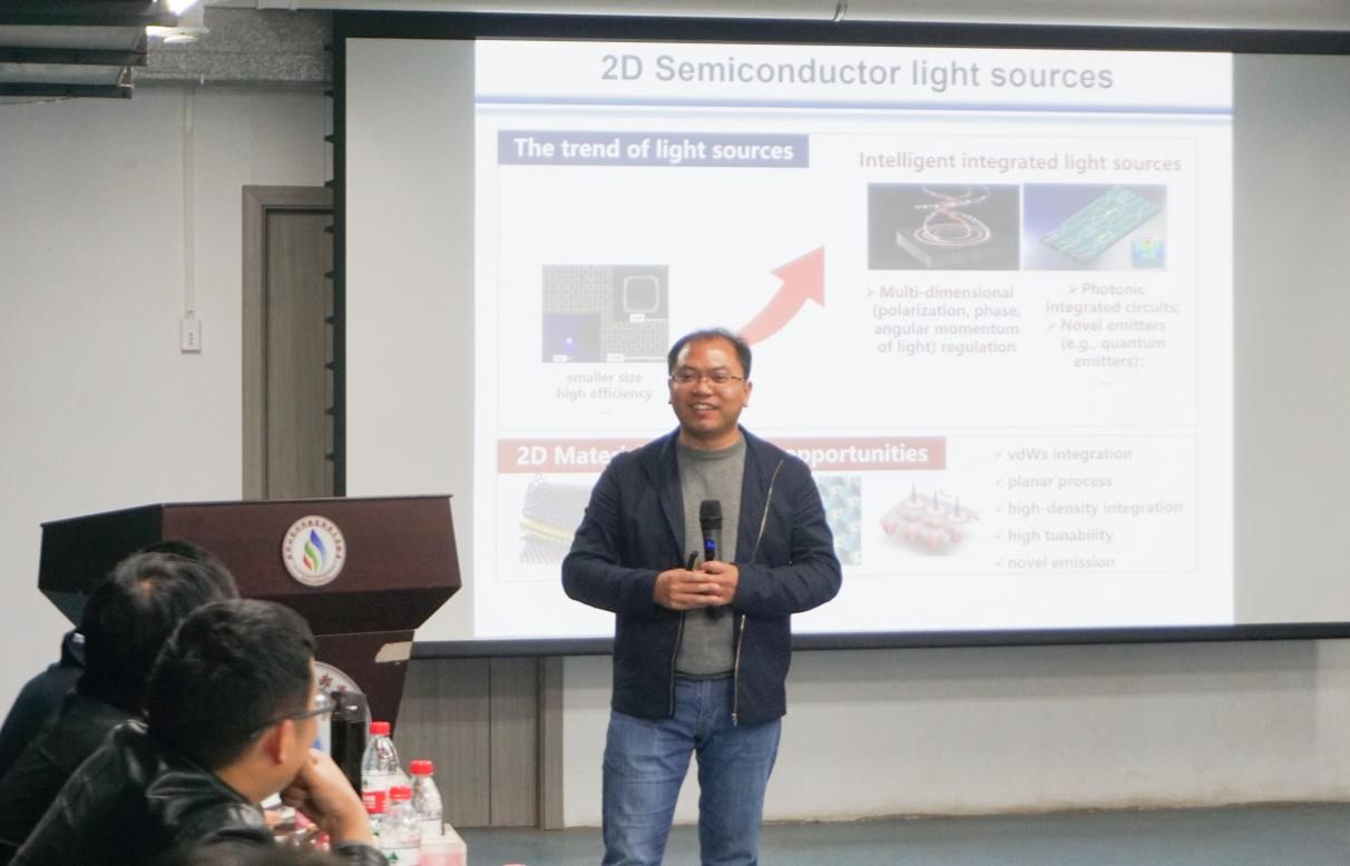 中国科学院苏州纳米所张凯研究员以《新型二维光源器件》为题,介绍了二维材料与发光器件研究进展,他着重介绍了黑磷等窄带隙二维半导体、拓扑材料等二维材料的可控生长及其发光物理机制。他强调二维半导体材料具有独特的发光特性,可实现偏振、相位的有效调控,可望在红外、太赫兹激光与探测、单光子光源、光器件集成等多个领域得到重要应用。