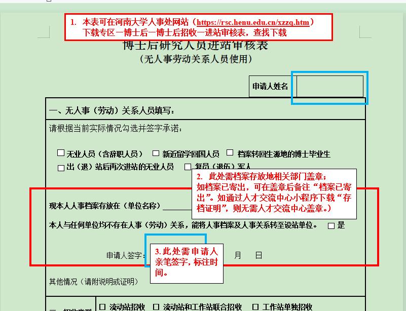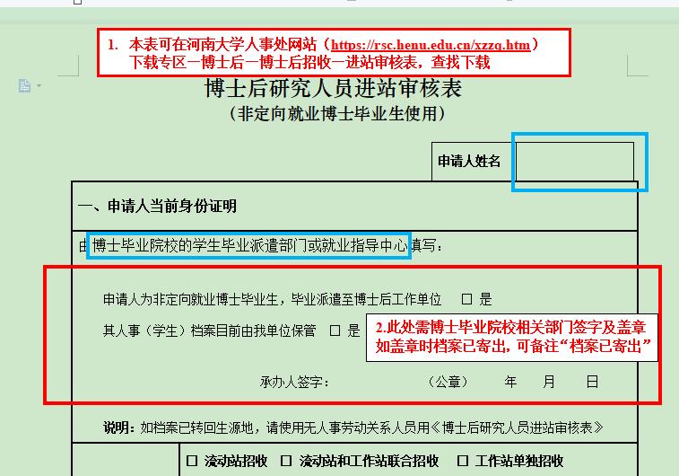 进站审核表电子版可从人事处网站下载专区“博士后专栏”下载(//rsc.69crxs.net/xzzq/bsh/bshzs.htm):