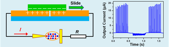 该工作研制了一种自驱动空气放电开关式摩擦纳米发电机,该开关只有当摩擦纳米发电机的输出电压高到足以引起空气放电时才会闭合,并产生瞬时脉冲输出,实现了由发电机自身产生的电压来驱动开关的目的。研究表明,通过调节两个放电电极之间的距离可以改变开关的工作模式,而在电弧放电模式下,摩擦纳米发电机的输出性能得到了极大地提高。此外,在一定的紫外光强度范围内,紫外光的照射可以改变开关的工作模式和发电机的输出电流。以此为基础,该工作研制了一种自驱动的紫外光检测器。其光电开关比达到了18.6,最低可检测的紫外光强度为26.2 μW /cm2。本篇工作为摩擦纳米发电机的输出能量管理提供了新的思路,并在自供电传感器方面具有良好的应用前景。