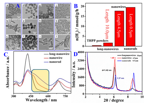 图2:卟啉纳米晶的光催化性能与尺寸形貌的依赖性