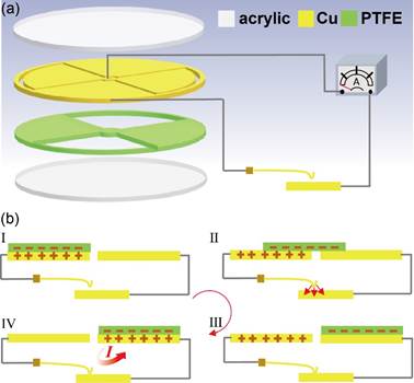 作为一种全新的能源技术,基于摩擦起电与静电感应效应耦合的摩擦纳米发电机(TENG)可以直接将环境中的各种各样的机械能,如风能、雨滴、波浪、人体运动等,直接转化为电能。与电磁发电机相比,其在较低的工作频率下具有较高的能量转化效率。与压电纳米发电机相比,其输出电压及能量提升了3-4个数量级,且其所用的材料和能量来源更加广泛。将TENG与电子器件在具体的工作环境中有效的结合起来,发展自驱动的电子器件或系统,将是可穿戴电子器件和物联网中传感器的发展方向。但是,由于TENG本身高电压、低电流和交流脉冲的输出特性,目前还没有一种TENG能够独立、持续、稳定的为电子器件供电。TENG都需要电源管理电路和能量存储器件来实现稳定的输出。