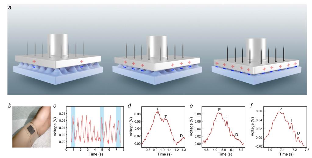 自驱动摩擦电触觉传感器的传感原理以及其对人体脉搏的检测