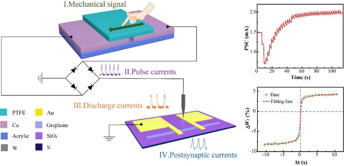 近期,程纲教授课题组的研究成果“The self-powered artificial synapse mechanotactile sensing system by integrating triboelectric plasma and gas-ionic-gated graphene transistor”在国际著名刊物Nano Energy (IF=17.881, JCR一区)上发表。