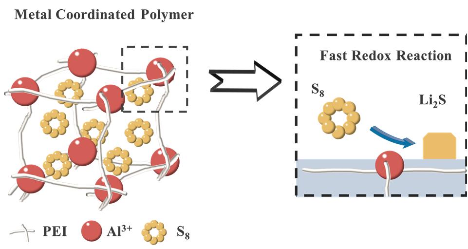 金属配位三维网络聚合物(PEI-Al)粘合剂构筑高负载硫正极并加速S↔Li2S转化反应