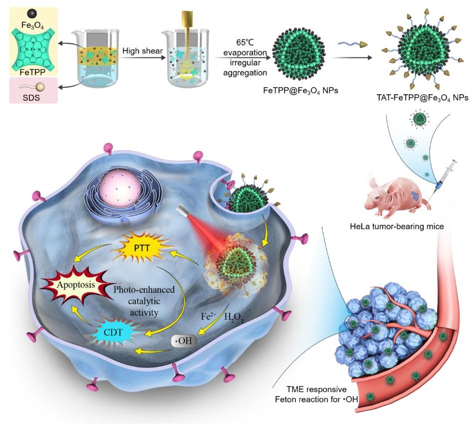 图5. FeTPP@Fe3O4-TAT复合纳米颗粒的共组装制备及其光热增强