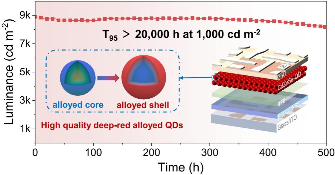 图1. ZnCdSe/ZnSeS-QLED的初始亮度随时间的变化