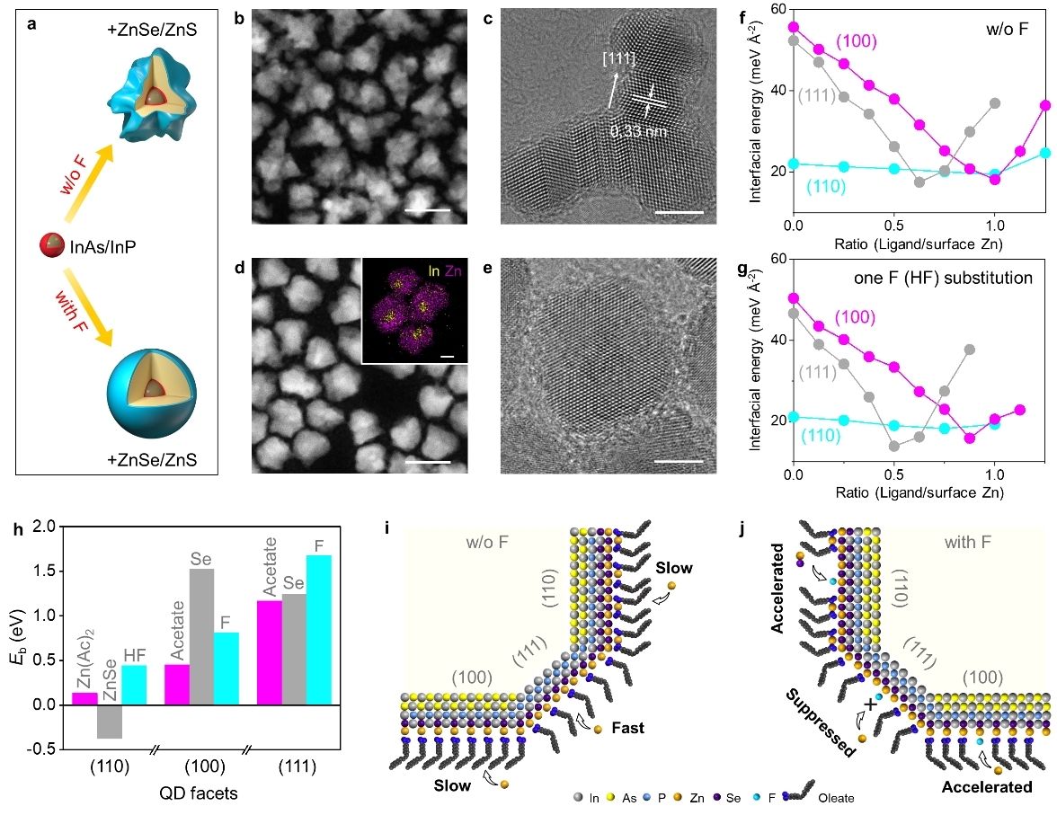 图1. 氟化锌对近红外InAs/InP/ZnSe/ZnS核壳量子点形貌的影响