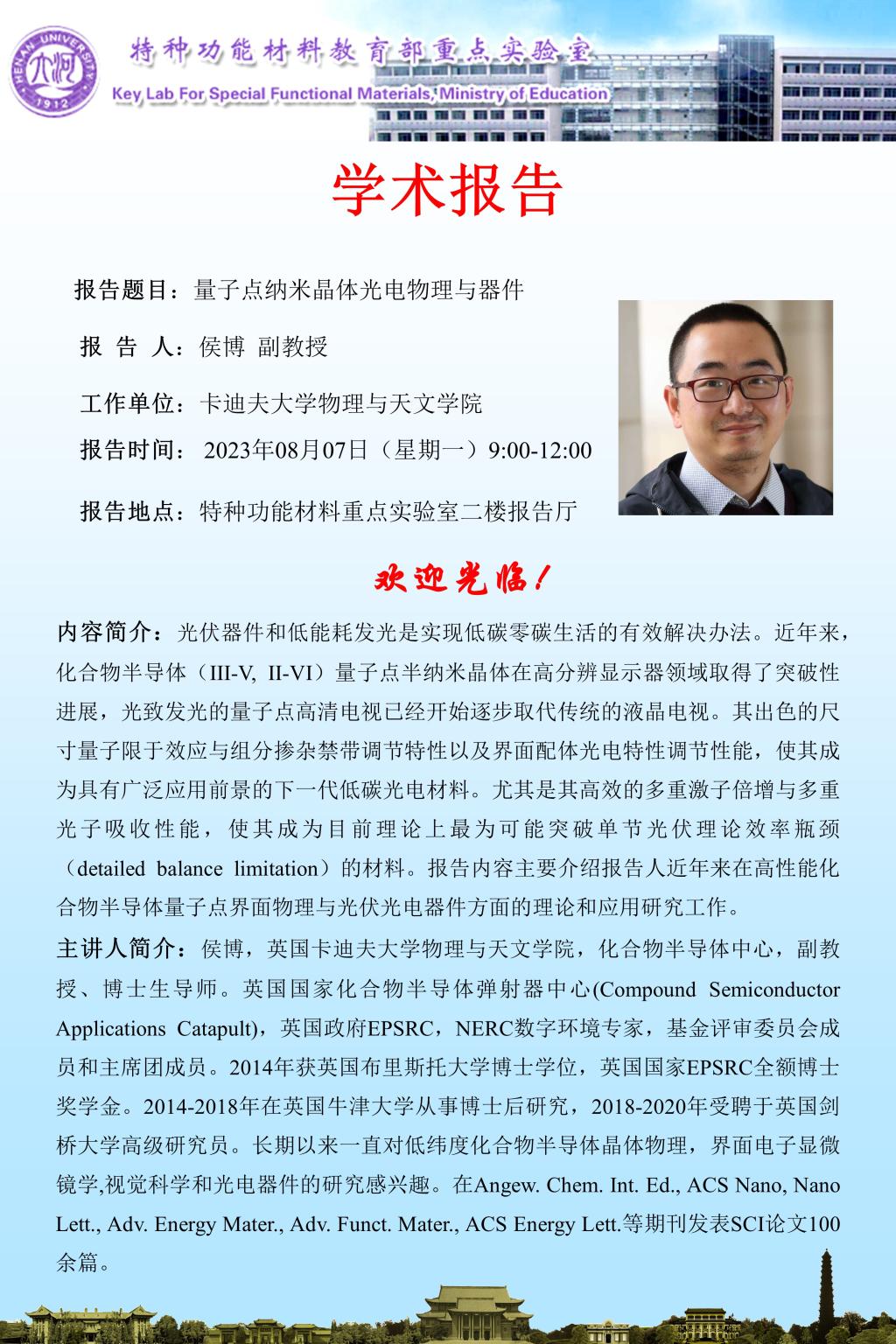 侯博:量子点纳米晶体光电物理与器件(时间:8.7)