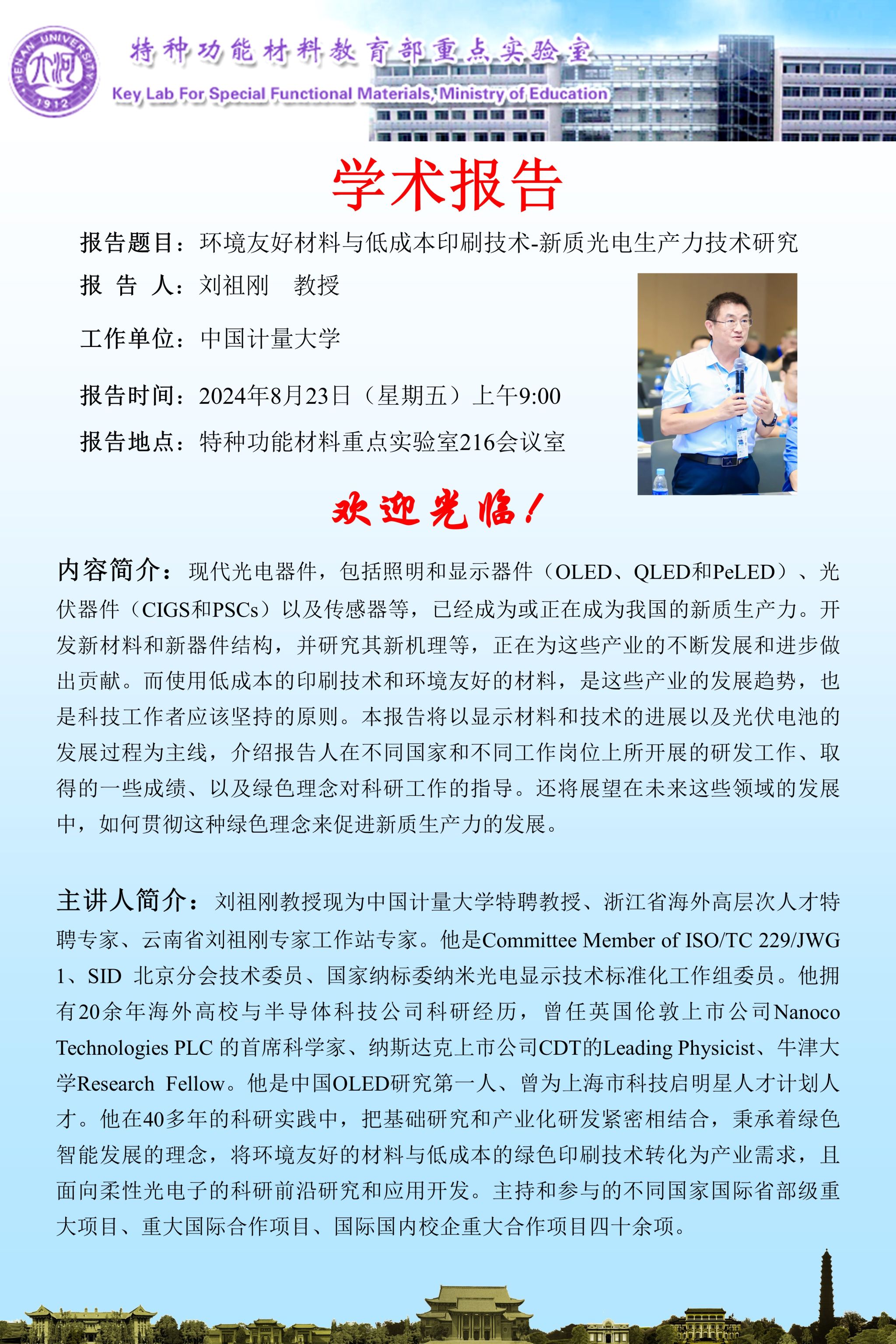 刘祖刚:环境友好材料与低成本印刷技术-新质光电生产力技术研究(时间:8.23)