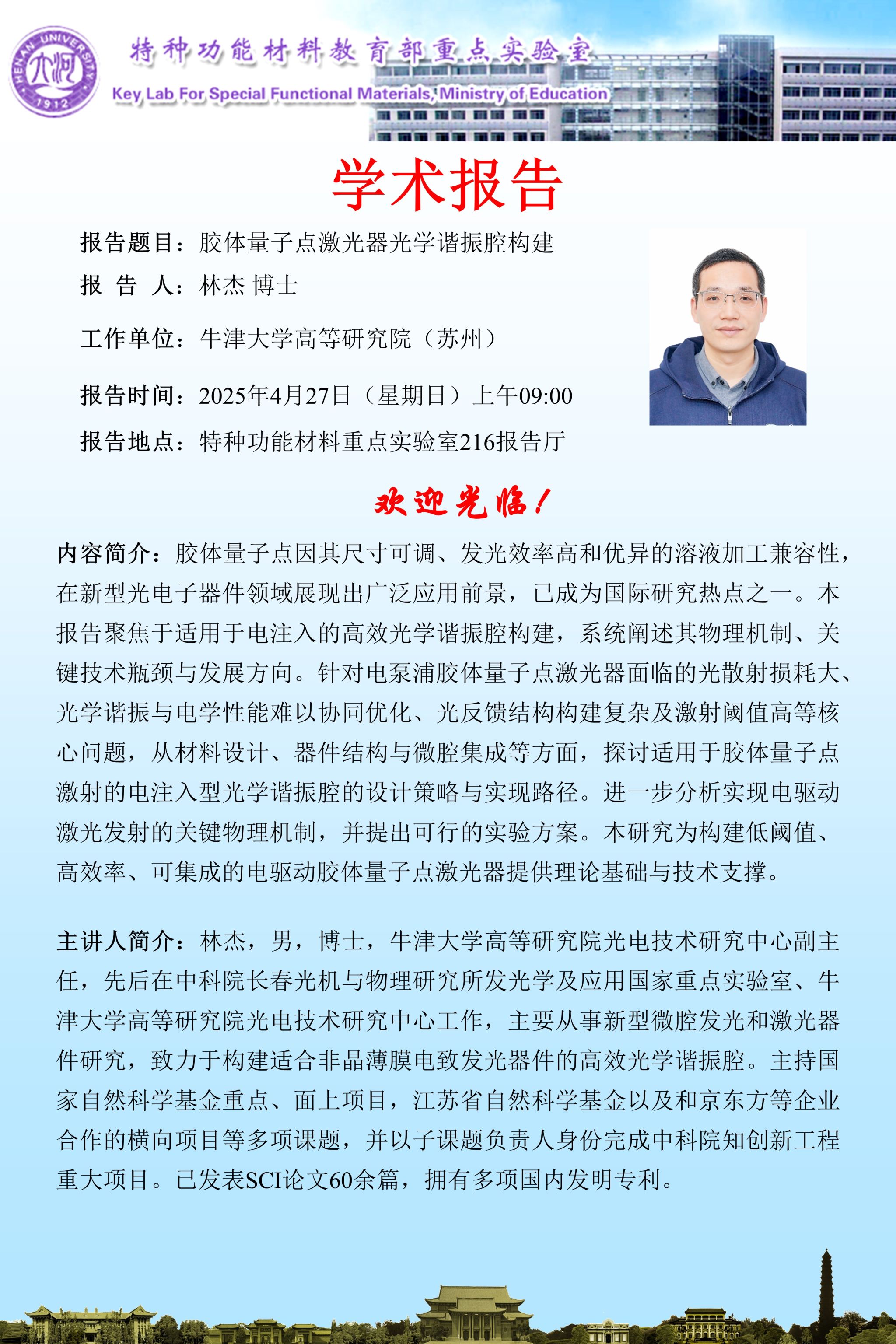 林杰:胶体量子点激光器光学谐振腔构建(时间:4.27)
