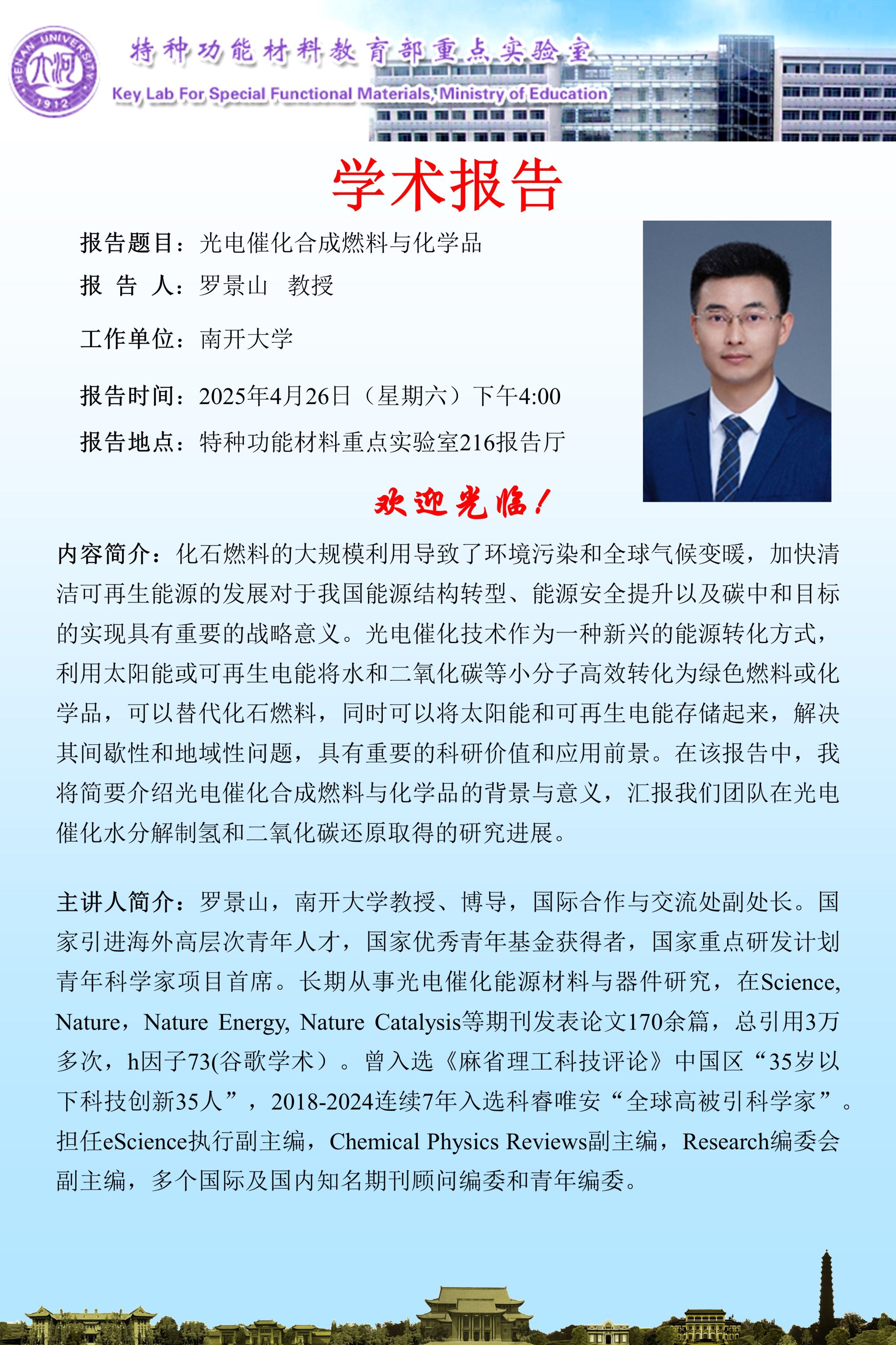 罗景山:光电催化合成燃料与化学品(时间4.26)
