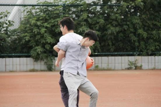两人背夹气球,步调一致向前走,绕过转折点回到起点。球落地即为失败,重新开始挑战。该游戏有效地拉进了同学间的距离,同时也让不熟悉的同学更加了解彼此。