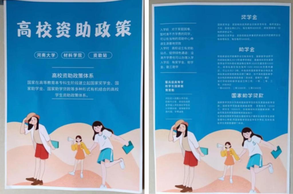 的特色资助措施,真正将资助政策送到老百姓手里。材料学院资助服务工作站特制作了资助政策宣传页供宣讲团作为本次活动的宣传材料之一。