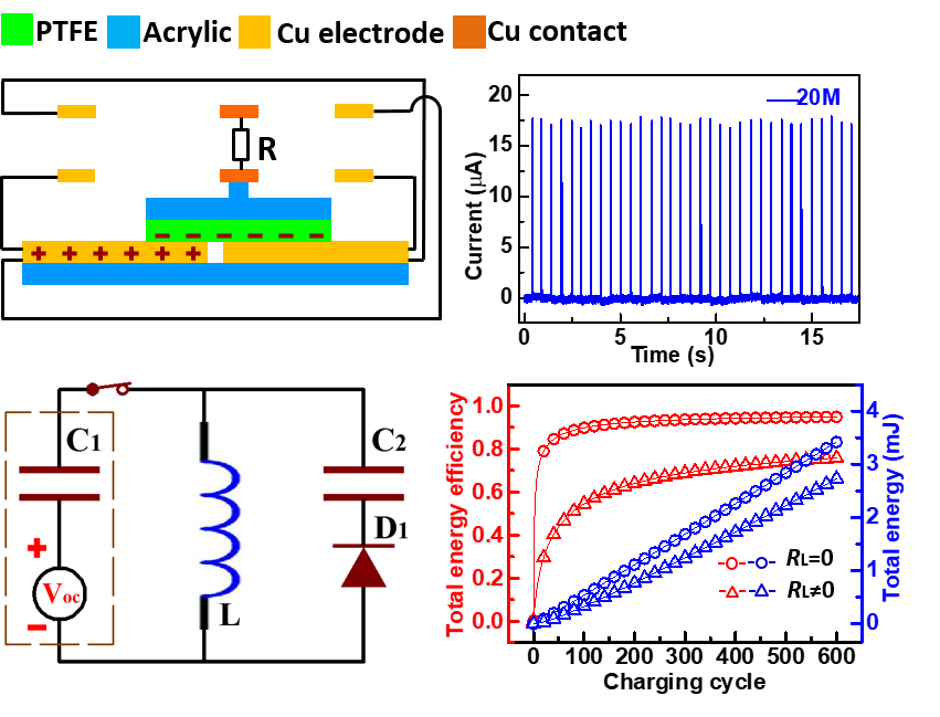 另外,在单极性脉冲TENG的基础上,程纲课题组设计了由电感、二极管和储能电容等简单原件组成的无源电源管理电路,能量存储效率可以达到48.0%,有望在TENG的自驱动传感系统中发挥重要作用。该工作“High energy storage efficiency triboelectric nanogenerator with unidirectional switch and passive power management circuit”在国际著名期刊Advanced Functional Materials(2018, 1805216)上发表。69成人小说
